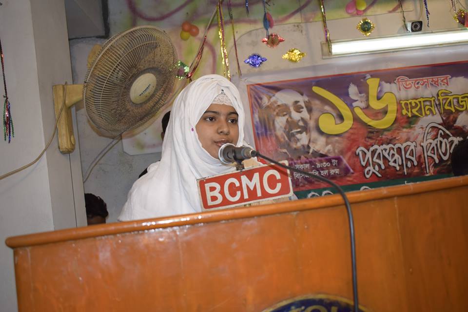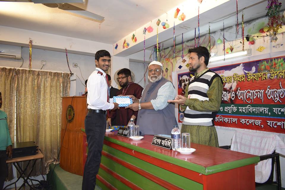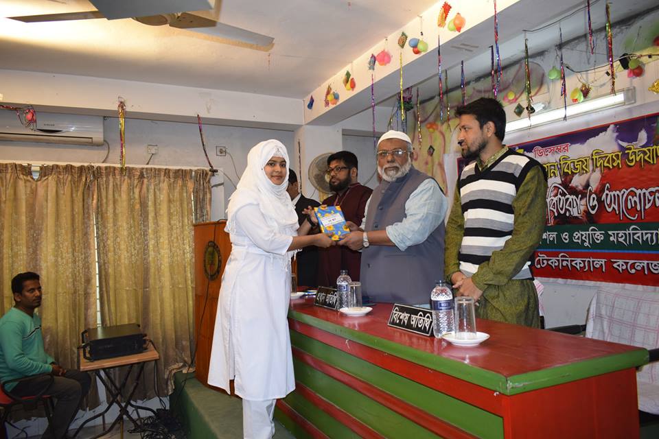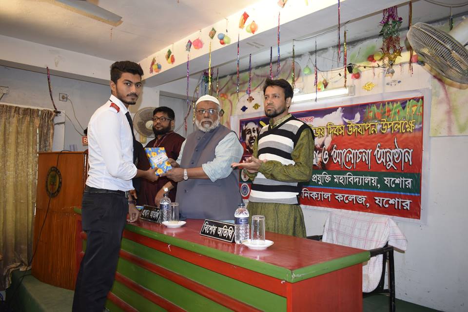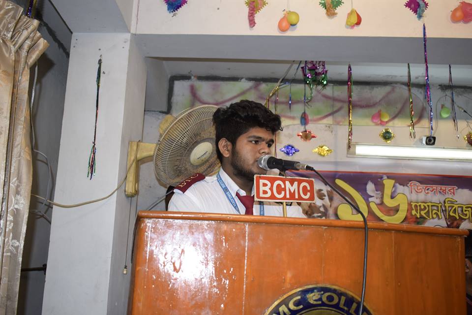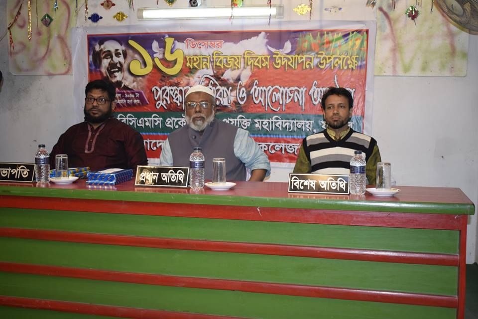 সহাকারী অধ্যাপক মো. আসাদুজ্জামান ও জাহিদুল ইসলাম যাদুর সঞ্চালনায় অনুষ্ঠিত আলোচনা সভায় প্রধান অতিথি বিসিএমসি চেয়ারম্যান প্রকৌশলী মো. আশরাফুল কবির বলেন, জাতির জনক বঙ্গবন্ধু শেখ মুজিবুর রহমানের দূরদর্শি নেতৃত্বে পৃথিবীর একমাত্র জাতি হিসেবে বাঙ্গালি পেয়েছে রক্তস্নাত বিজয় দিবস। এ দিবসে আমাদের শপথ হওয়া উচিৎ রাজাকারমুক্ত বাংলাদেশ গড়ার। তিনি আরো বলেন স্বাধীনতার পক্ষের বিপক্ষের নামে জাতি কার্যত দুভাগে বিভক্ত। স্বাধীনতার পক্ষের শক্তিরা দেশের উন্নয়ন চায়, আর বিপক্ষের শক্তিরা পেছনে টানে। কাজেই তরুণদের সিদ্ধান্ত নিতে হবে তারা কোন পক্ষে যাবে।