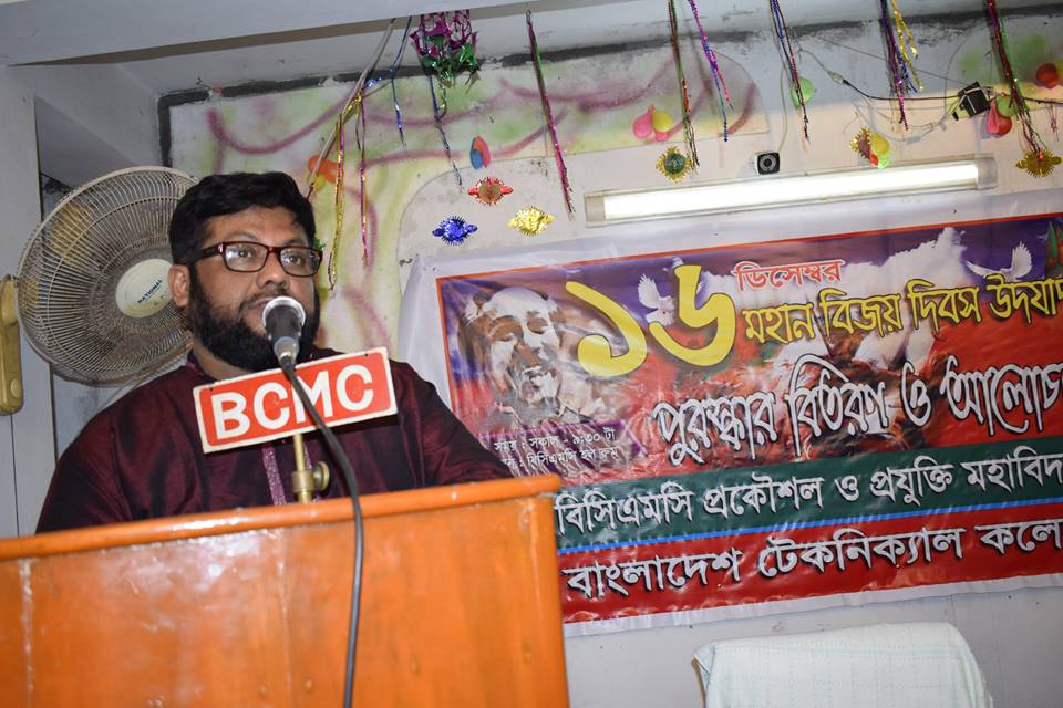 জাতীয় পতাকা উত্তোলন, বিজয় র্যালি, বিজয় স্মৃতিস্তম্ভে শ্রদ্ধার্ঘ্য অর্পণ, দেয়াল পত্রিকার মোড়ক উন্মোচন, রচনা প্রতিযোগিতার পুরস্কার বিতরণ এবং আলোচনার মাধ্যমে বিসিএমসি প্রকৌশল ও প্রযুক্তি মহাবিদ্যালয় এবং বাংলাদেশ টেকনিকাল কলেজ বিটিসি’র যৌথ উদ্যোগে উদযাপিত হলো ৪৮তম মহান বিজয় দিবস। এসব অনুষ্ঠানে বিসিএমসি চেয়ারম্যান প্রকৌশলী মো. আশরাফুল কবির প্রধান অতিথি হিসেবে উপস্থিত ছিলেন। সভাপতিত্ব করেন বিসিএমসি অধ্যক্ষ প্রকৌশলী এস এম রেজাউল কবীর। বিশেষ অতিথি ছিলেন বিটিসি অধ্যক্ষ মো. আফজাল হোসেন।