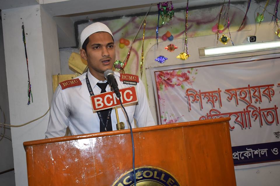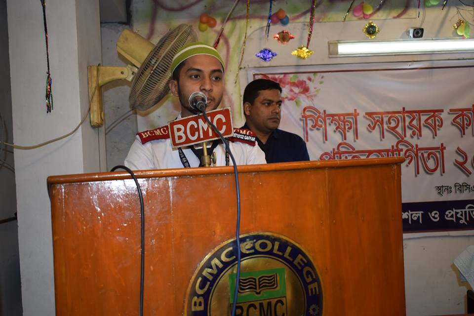 কেরাত ও ইসলামী সঙ্গীত প্রতিযোগিতার মাধ্যমে বিসিএমসি প্রকৌশল ও প্রযুক্তি মহাবিদ্যালয়ে ১৭ নভেম্বর ২০১৮ থেকে শুরু হয়েছে চলতি সেমিস্টারের ক্লাব কার্যক্রমের প্রতিযোগিতা। চলবে ২৭ নভেম্বর ২০১৮ পর্যন্ত। বিসিএমসি মুসলিম রিলিজিয়াস ক্লাবের আয়োজনে এ প্রতিযোগিতা অনুষ্ঠিত হয় । প্রতিযোগিতায় প্রধান অতিথি ছিলেন বিসিএমসি চেয়ারম্যান প্রকৌশলী মো. আশরাফুল কবির। ক্লাব সভাপতি ও বিসিএমসি কেন্দ্রীয় জামে মসজিদের খতিব ও পেশ ইমাম আলহাজ মুফতি মাওলানা মো. মাহবুবুর রহমানের সভাপতিত্বে বিশেষ অতিথি ছিলেন শিক্ষা সহায়ক কার্যক্রমের কো-অর্ডিনেটর ও বিসিএমসি রেজিস্ট্রার অধ্যাপক ড. মো. সারাফাত হোসেন। প্রাথমিক বাছাই শেষে কেরাত প্রতিযোগিতায় ৫জন ও ইসলামী সঙ্গীত প্রতিযোগিতায় ৫জন প্রতিযোগী অংশগ্রহণ করে। কেরাত প্রতিযোগিতায় ১ম, ২য় ও ৩য় স্থান লাভ করেন যথাক্রমে মেকানিক্যাল ৭ম পর্বের আব্দুল গফ্ফার, সিভিল ৩য় পর্বের রিহাদ হোসেন ও কম্পিউটার ৩য় পর্বের ফারিহা মিম। ইসলামী সঙ্গীত প্রতিযোগিতায় ১ম হয়েছেন টেক্সটাইল ৭ম পর্বের রায়হানুল ইসলাম, ২য় সিভিল ১ম পর্বের মো. ওবাইদুর ও ৩য় মেরিন ১ম পর্বের মো. আরিফুজ্জামান। অনুষ্ঠান পরিচালনা ক্লাব সচিব করেন আবুল কালাম আজাদ।